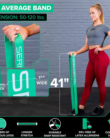 **Range of tension was measured with an industrial scale. First measurement recorded at 6" and last measurement recorded at 2.5x its length. We recommend measuring band tension for your specific set up using a luggage scale as these are only for reference.