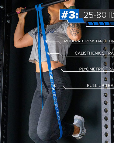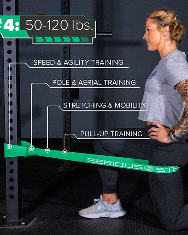 High Resistance: Bands #3 Blue & #4 Green can be used by stronger powerlifter, and with exercises involving the lower body, calves, quads, hamstring and glutes.