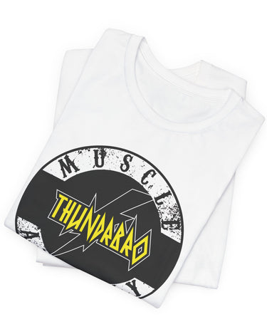 This lightweight jersey tee brings sharp, gym-ready attitude to everyday wear. A bold circular chest emblem with a high-contrast center badge reads like a vintage club patch, while the back carries a short, witty phrase that sparks conversation. The cotton fabric breathes during workouts and moves easily under a zip-up or flannel for layered looks. Wear it to training sessions, weekend hangouts, or casual meetups where humor and grit belong.